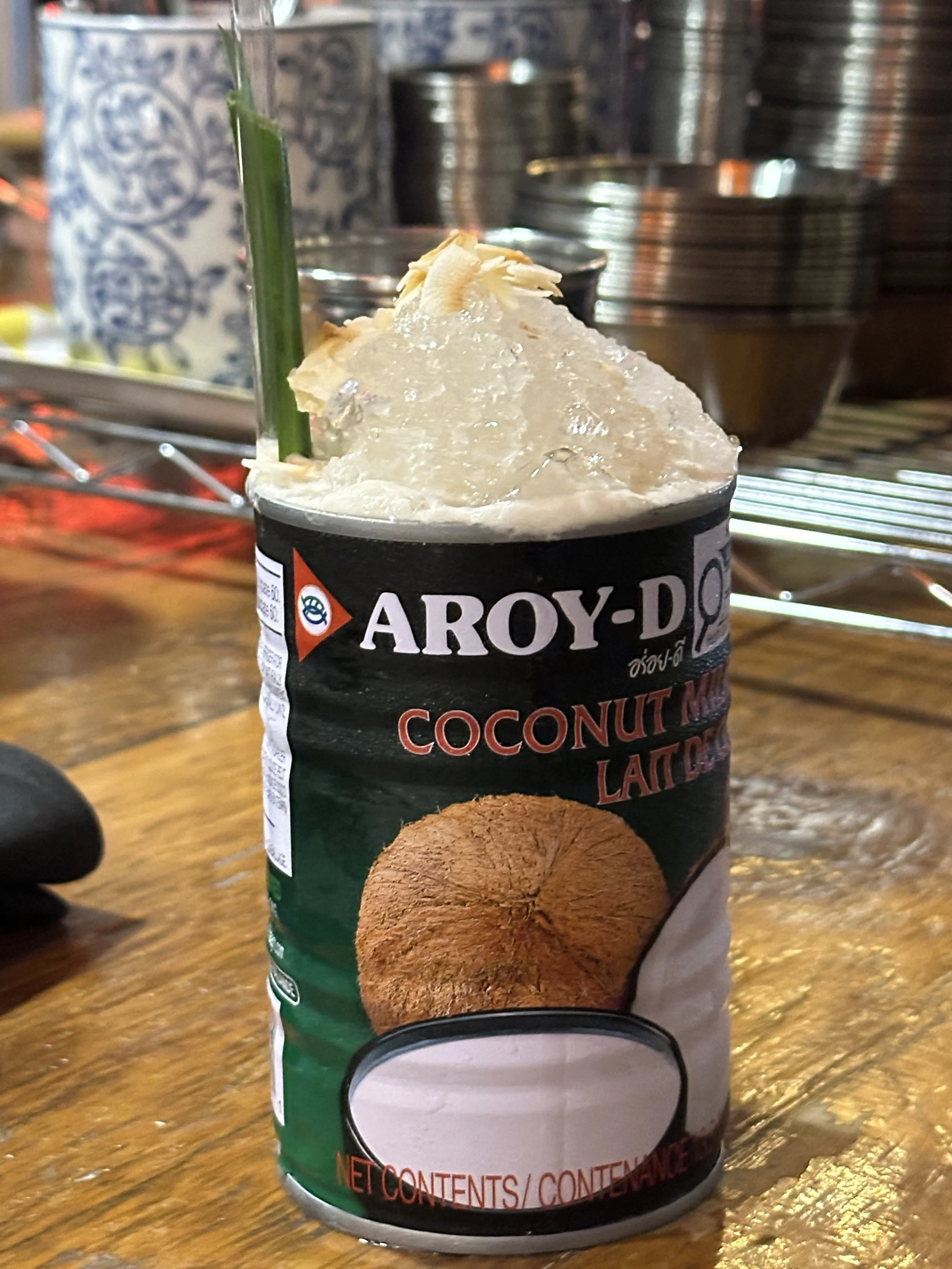 Reading through the menu was mouth watering on its own, as its the kind of menu which has just enough choice to make you question your decision ten times over before actually ordering. Our wonderful waiter tried his best to help us with skillful recommendations, but we soon realized that most of the menu was considered a crowd-favourite. Here’s what we settled on: the stir fry vegetables, which was water morning glory this time around, Prahok Ktiss (a pork belly dip), Bánh Xèo (more on that later), Kroeung Chicken Skewers and Twa Ko (fermented Khmer beef sausage), with a side of sticky rice. Let’s not forget dessert (we tried both available options) and the beautiful cocktails, pictured below.